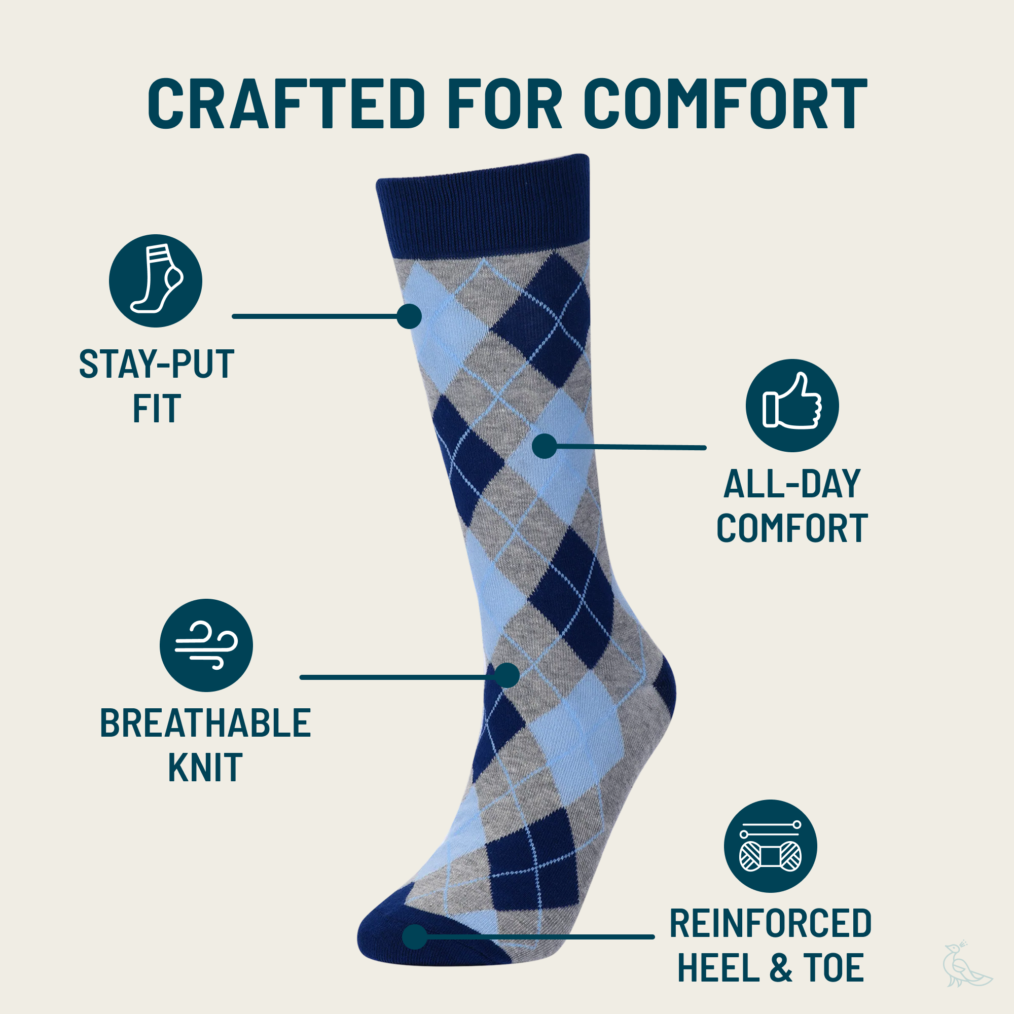 A best-seller, these blue and grey argyle socks make a subtle statement that you care, but not too much. Conservative but fun, stay on top of your sock game with this pair.