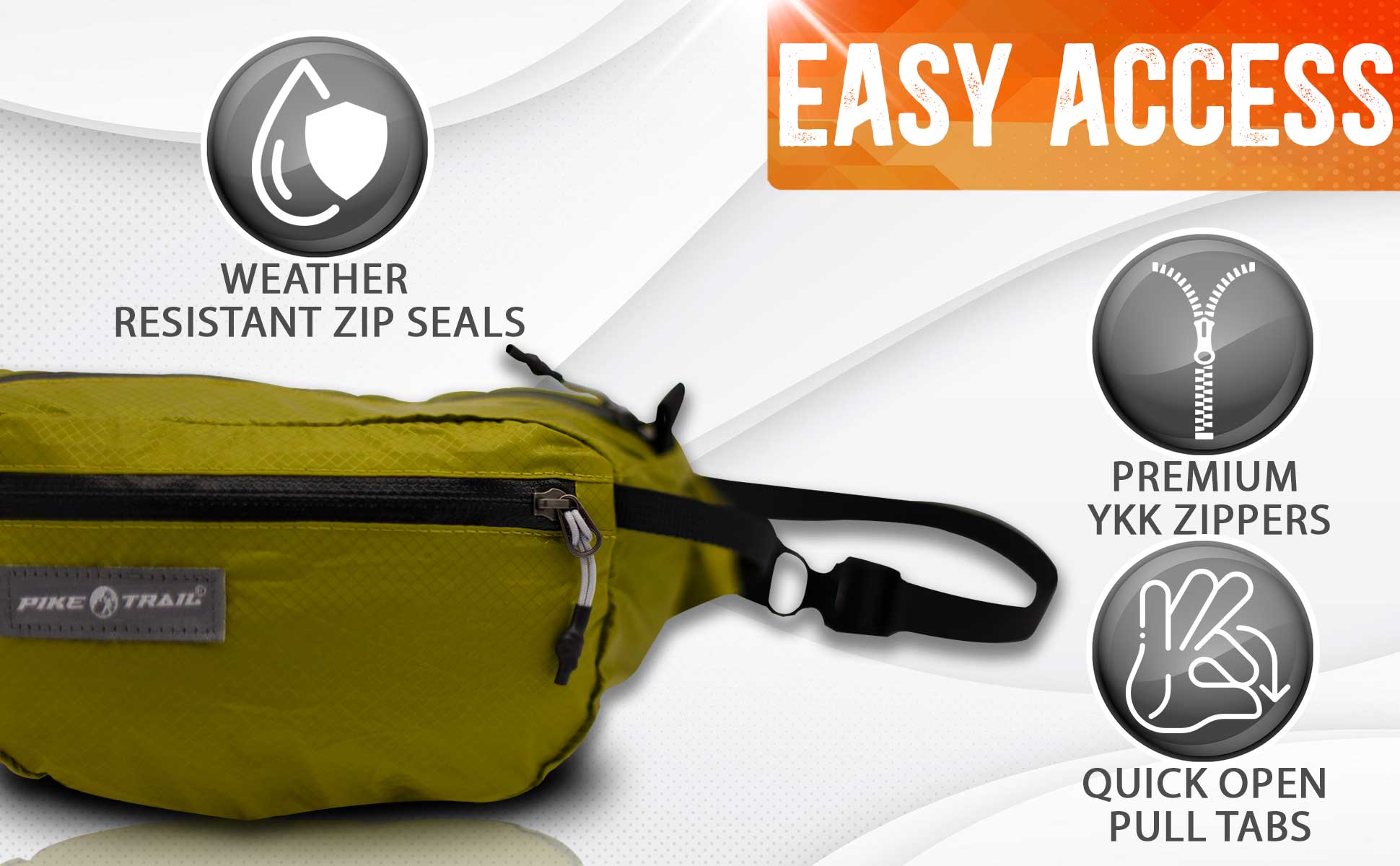 That’s where the Pike Trail fanny pack for hiking comes in. This water resistant fanny pack is designed to keep everything you need—snacks, water bottle, phone, and keys—right at your fingertips. Whether you need a running fanny pack for a quick jog or a fanny pack for hiking rugged trails, our Pike Trail fanny pack allows you to focus on the journey, not the hassle!