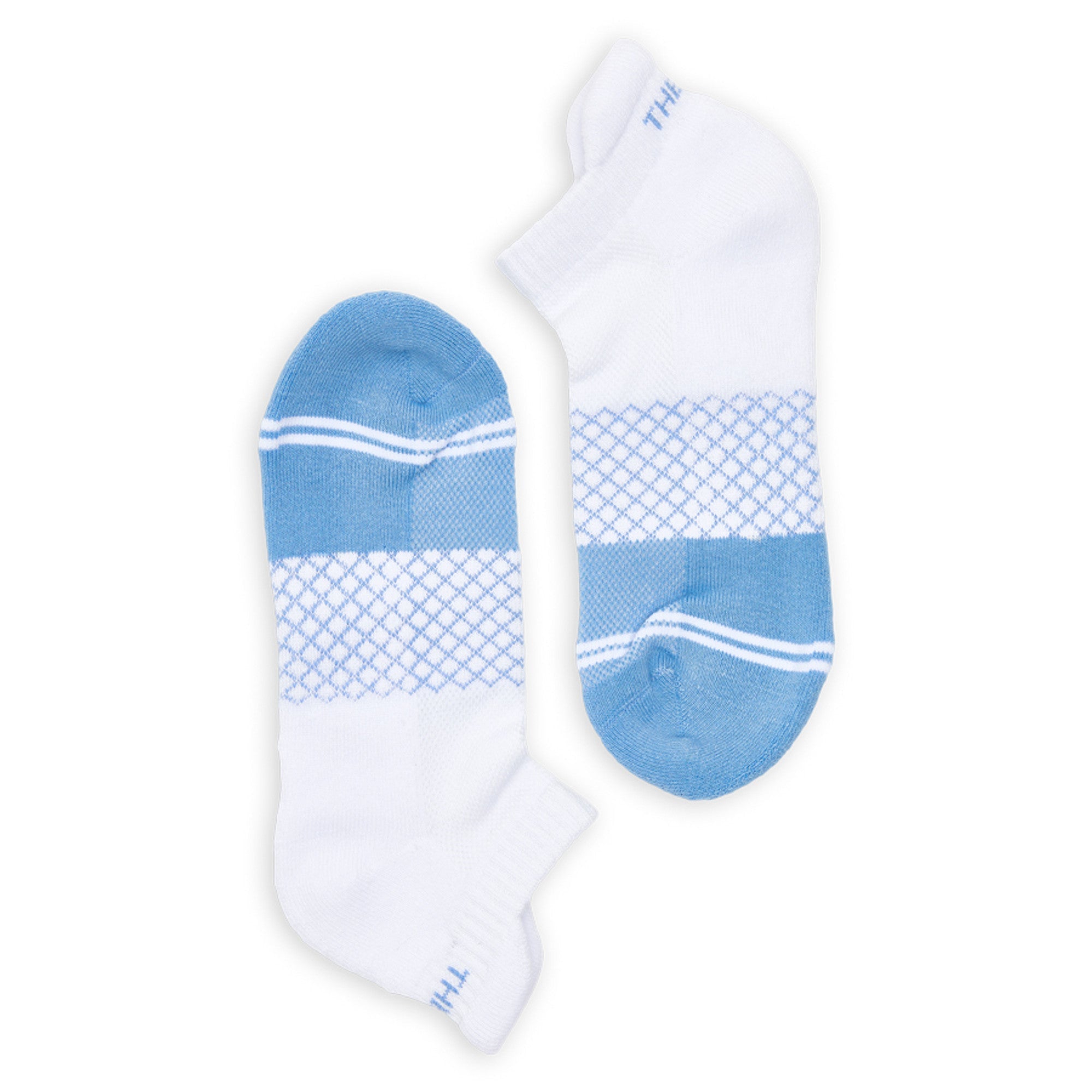 Introducing our premium White Powder Sip Ankle Socks, the perfect blend of Ole Miss pride and advanced sock technology. These socks feature a sleek white and powder 50/50 colorway and the iconic ' The Sip ' on the back of the ankle. Designed for both style and functionality, these ankle socks are loaded with features to enhance your everyday comfort.